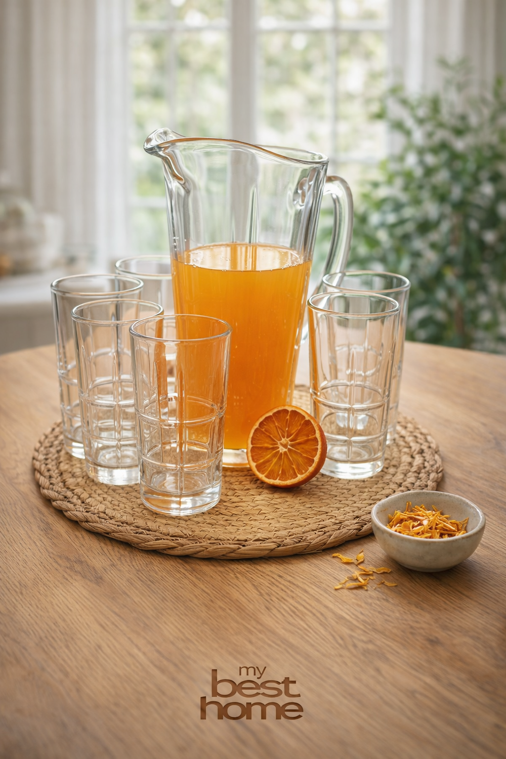 Service à eau en verre élégant – Carafe + 6 verres assortis pour table raffinée